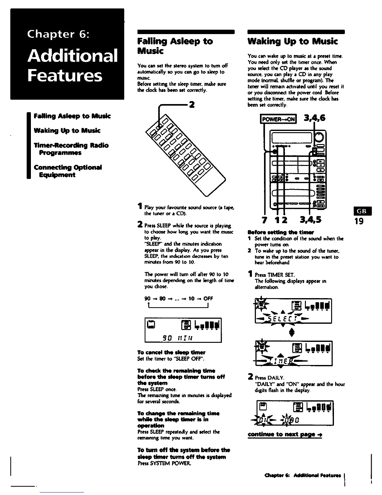 Sony MHC-C33 - Additional Features; Falling Asleep to Music; Waking up to Music