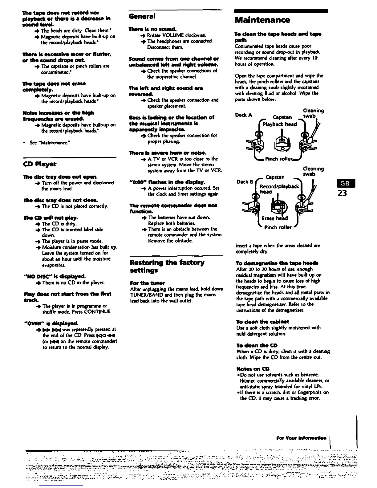 Sony MHC-C33 - Maintenance; To Clean the Tape Heads and Tape Path; To Demagnetize the Tape Heads; To Clean the Cabinet