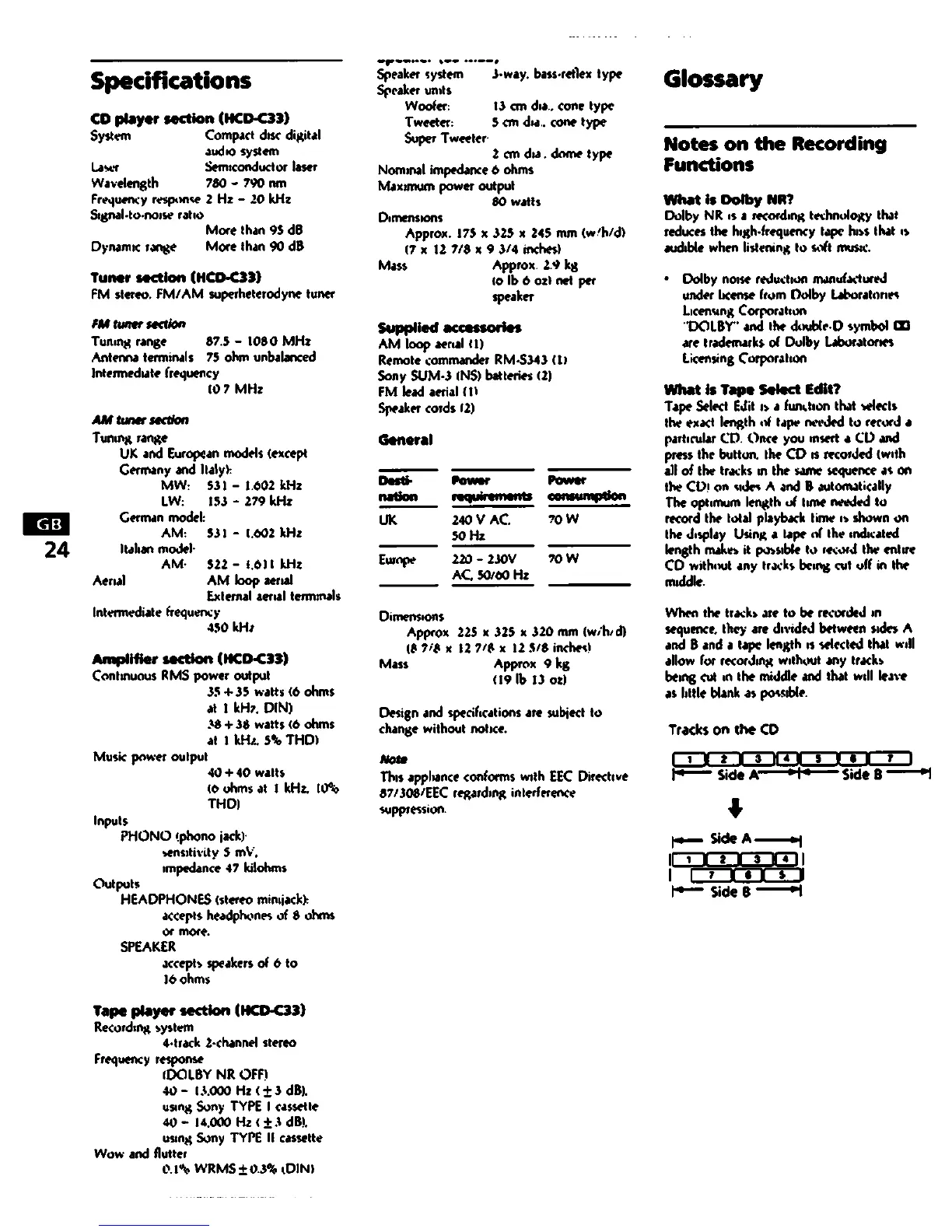 Sony MHC-C33 - Specifications; Glossary