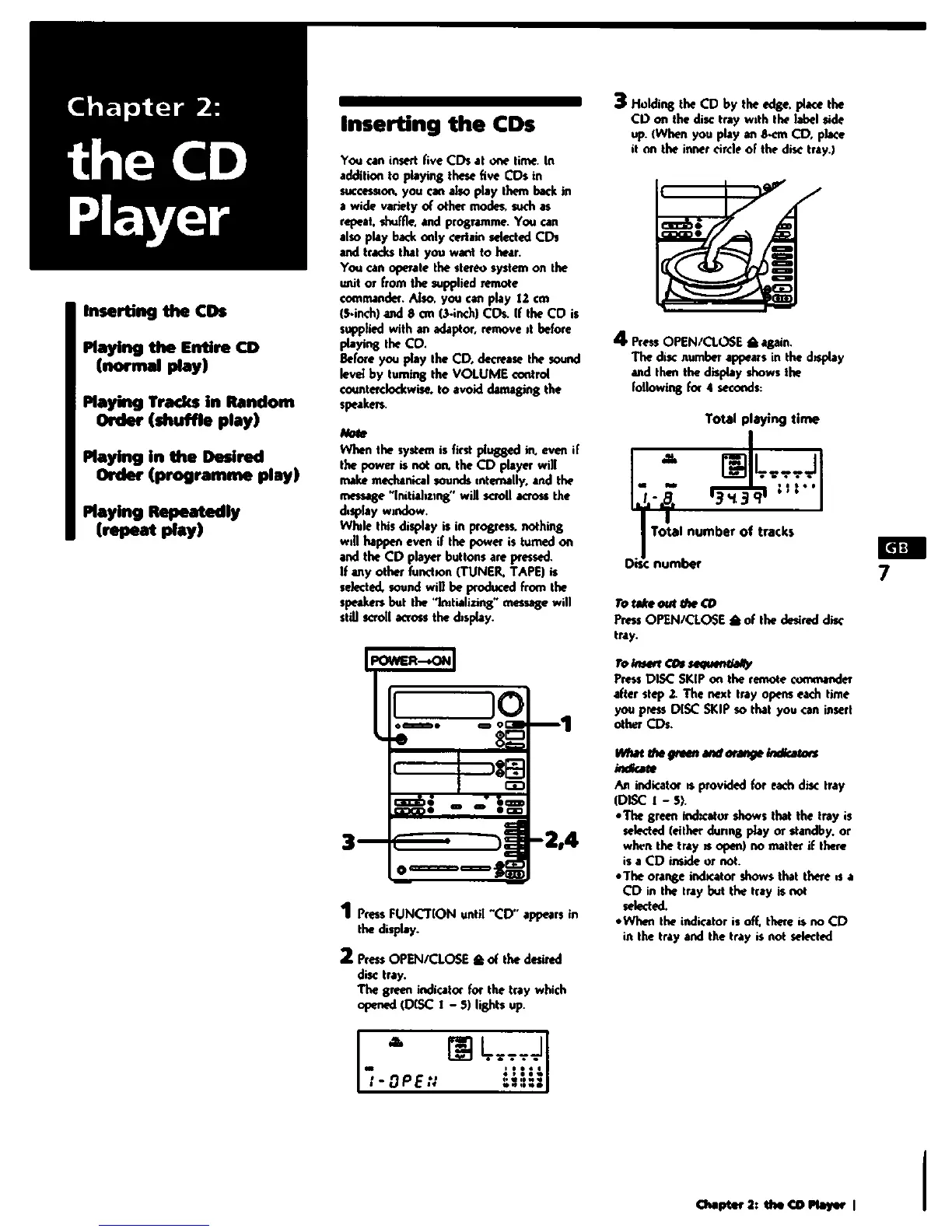 Sony MHC-C33 - Using the CD Player; Inserting CDs into the Player