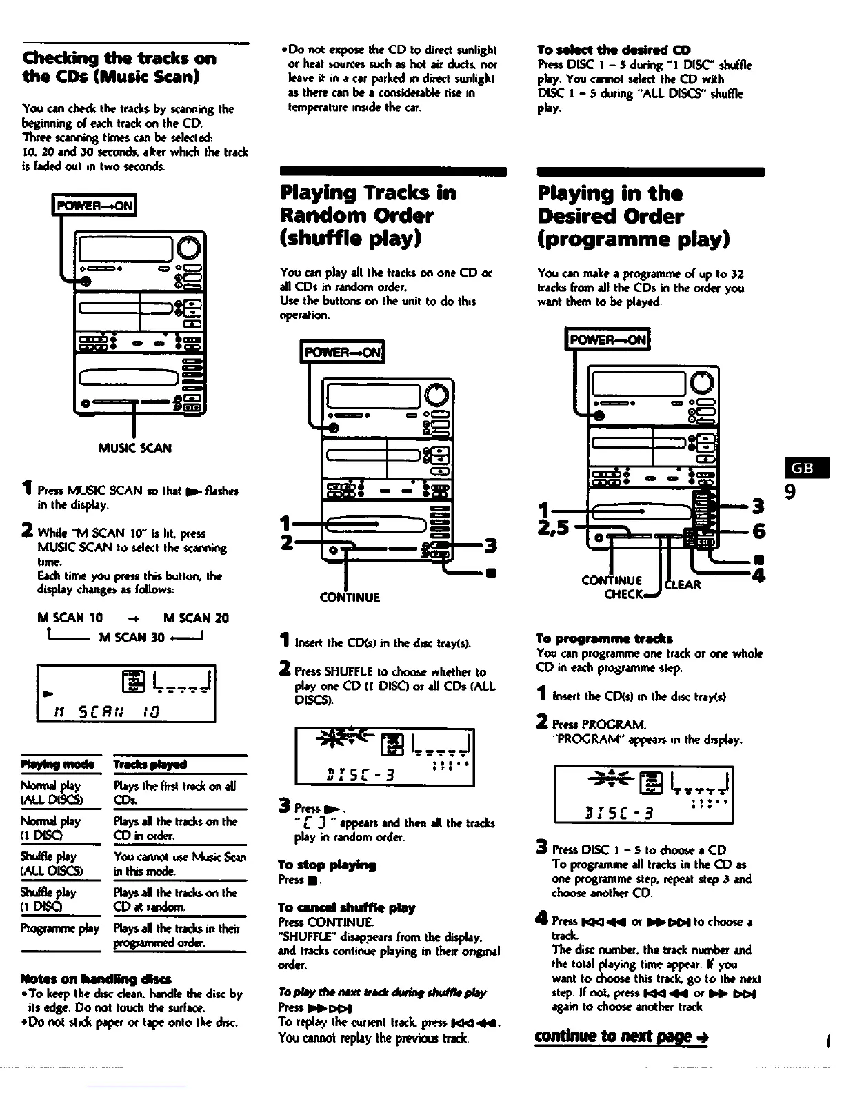 Sony MHC-C33 - Playing Tracks in Random Order (Shuffle Play); Playing in the Desired Order (Programme Play); Checking the Tracks on the Cds (Music Scan); To Programme Tracks