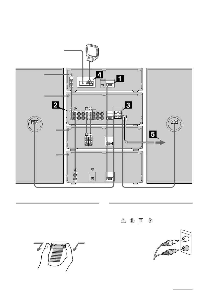 Perform the following procedure 1 to 5 to hook up your system using the supplied cords and