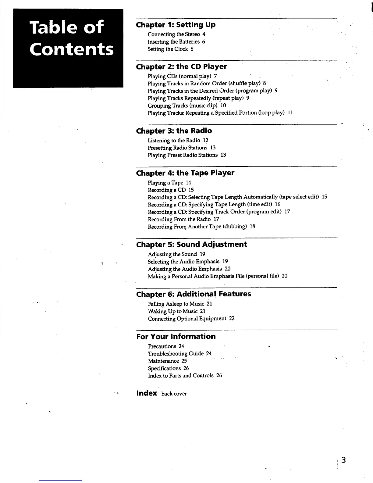 Sony MHC-RX30 - Table of Contents