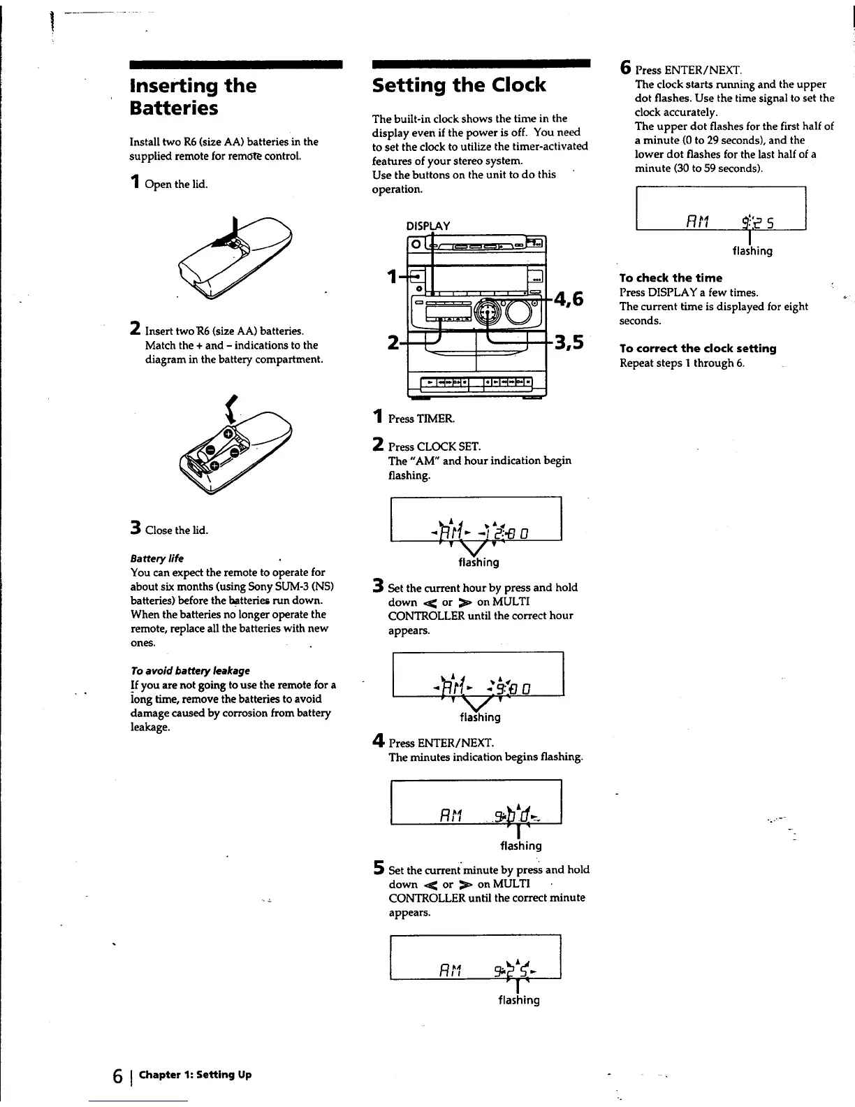 Sony MHC-RX30 - Remote Battery Installation and Clock Setting
