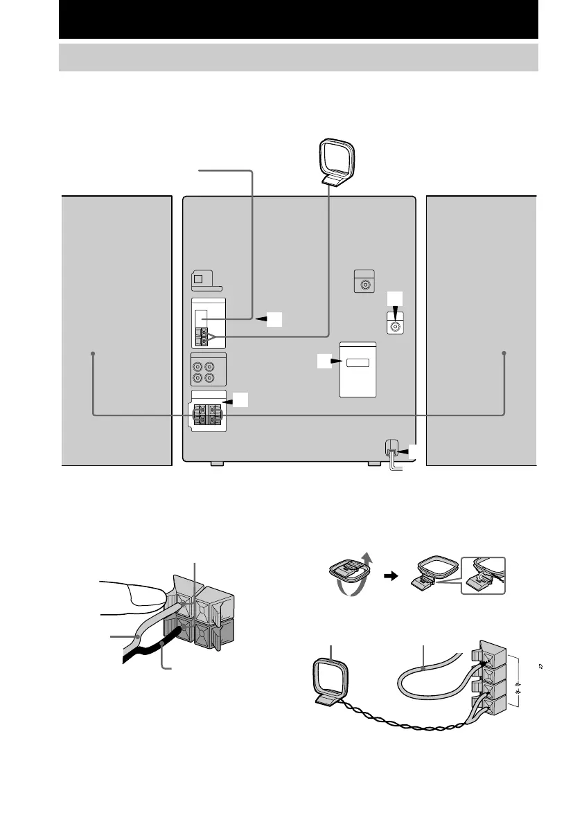 Perform the following procedure 1 to 5 to hook up your system using the supplied cords and
