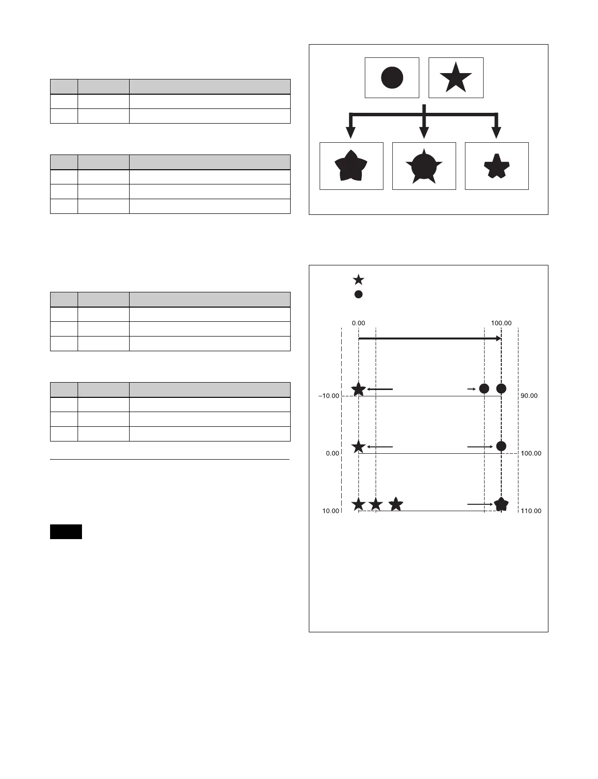 b) At –100.00 tiles in all rows appear simultaneously; at +100.00 tiles appear