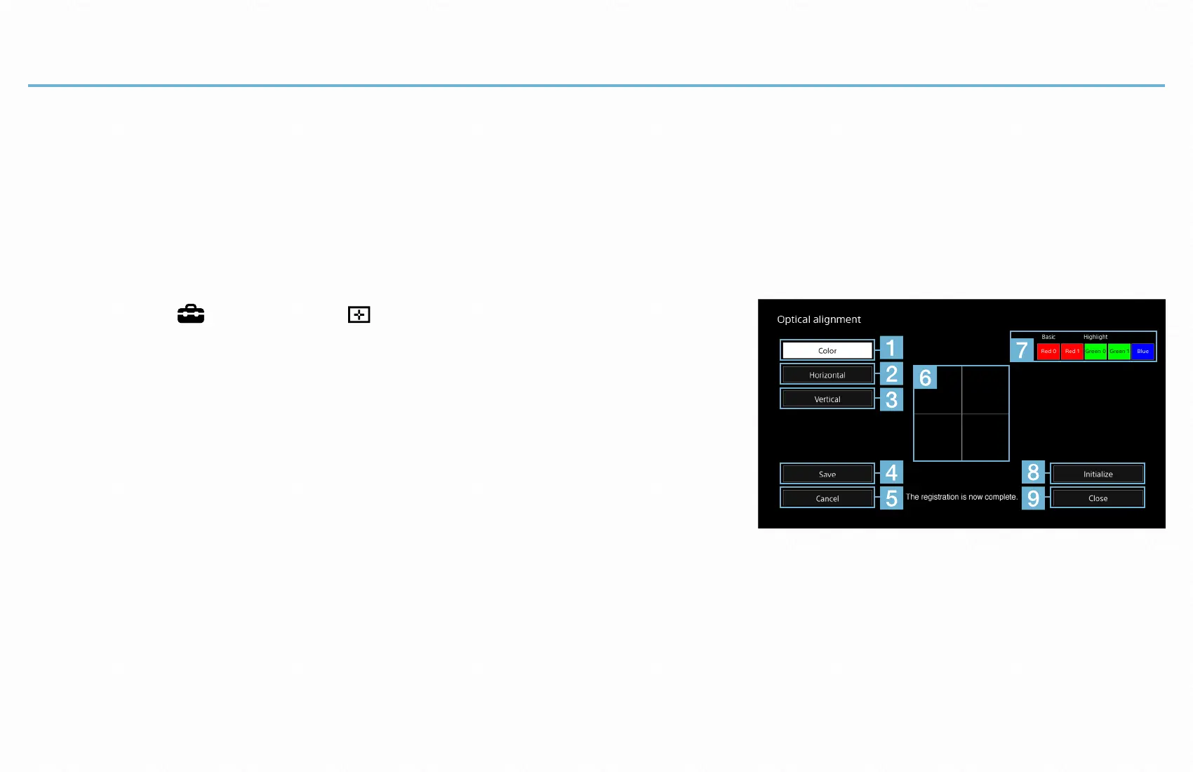 colored lines are seen beside the crossed lines in the [Optical alignment] screen, the