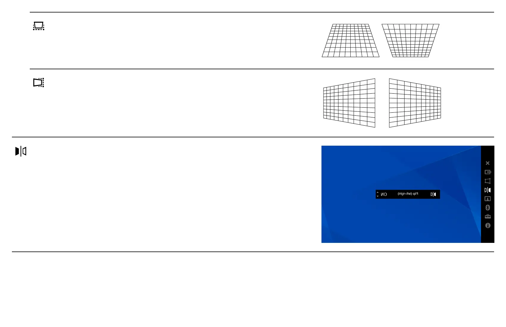 V keystone Corrects vertical distortion. The