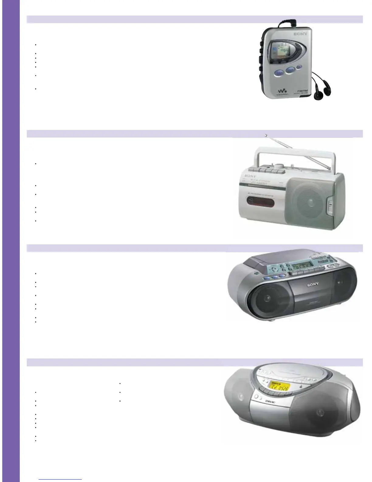 Sony MP3 Walkman - Sony Cassette and CD Players; Cassette Radio Walkman WMFX290; AM;FM Mono Cassette Recorder CFM1 OW; CD Radio Cassette Recorder CFDS01