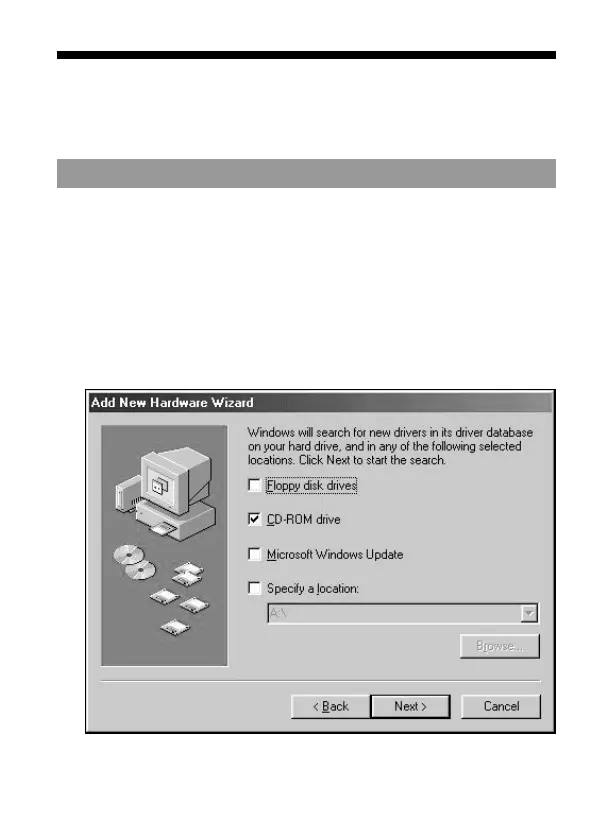 d’ajout de périphérique de Windows 98 se met en marche.