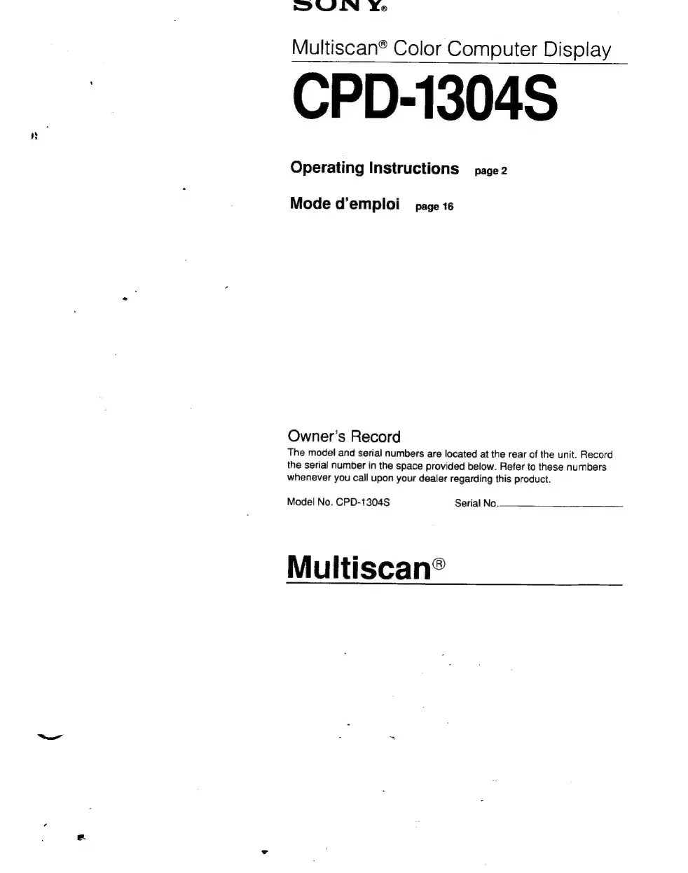 What to do if I have a communication error on my Sony Multiscan CPD-1304S?