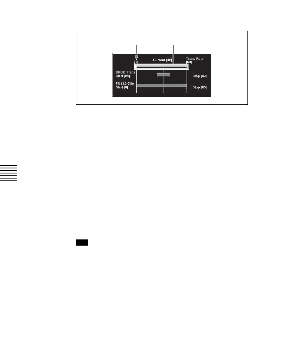 The background transition start point and end point, and the clip start point are
