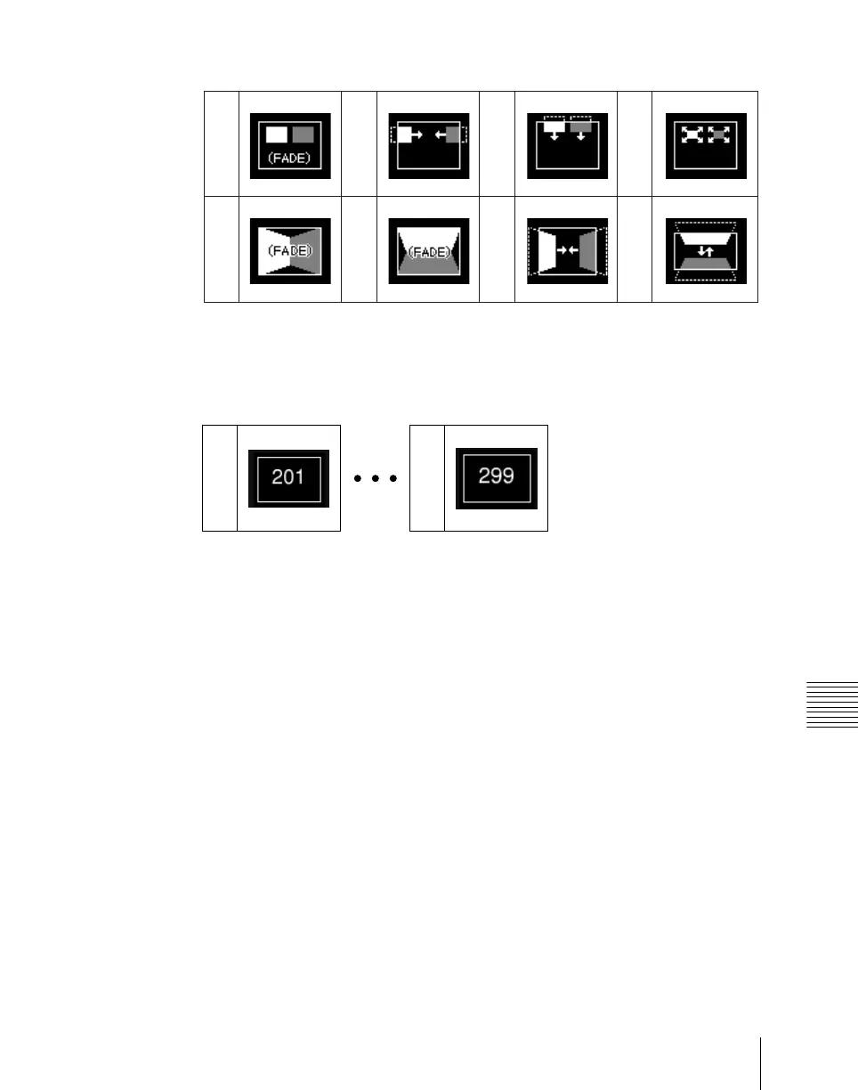 The illustrations for patterns 2901 to 2999 show an effect register number or
