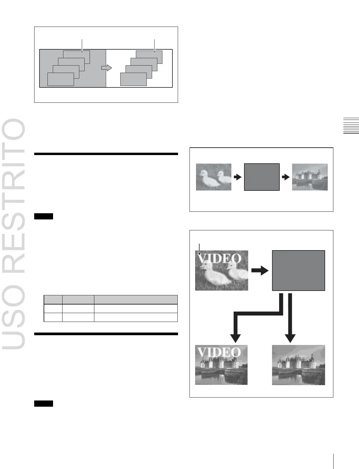 You can set the output levels of the current and new video