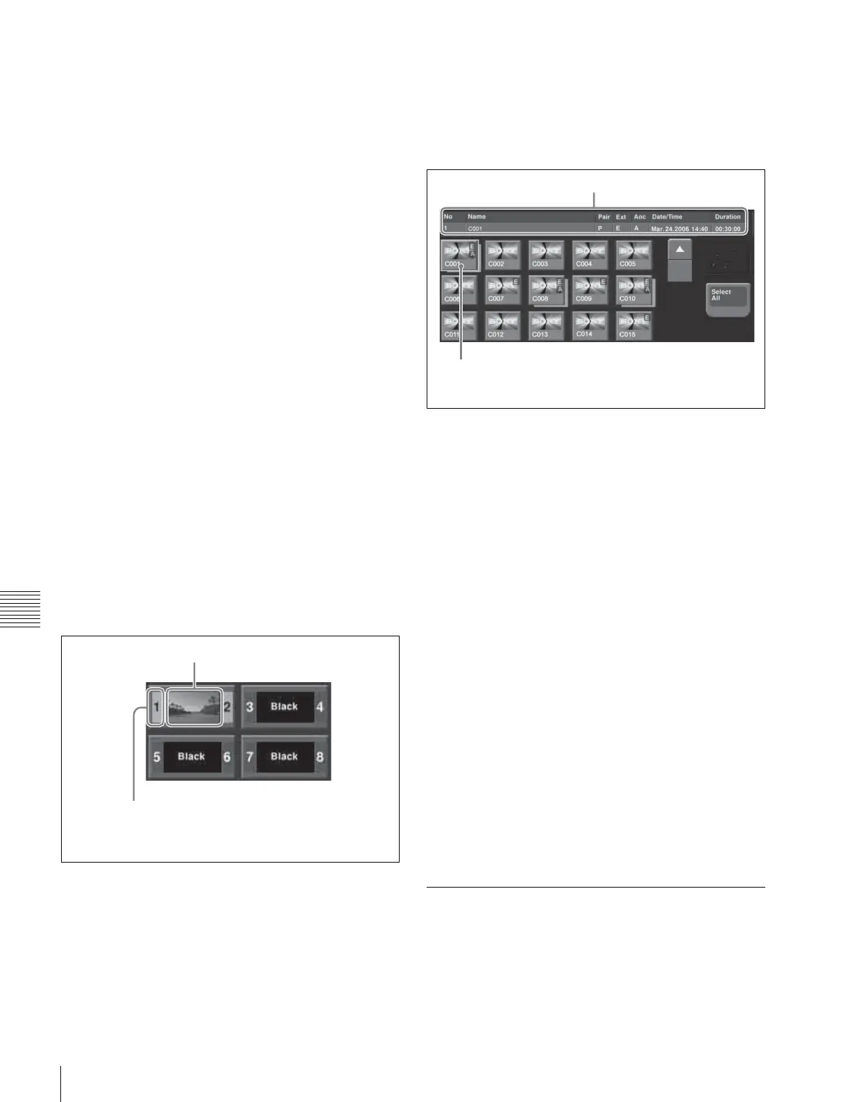 displayed as gray buttons and clip files are displayed