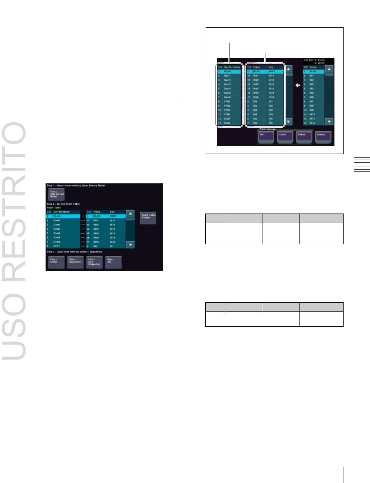 1 In the User Setup menu, select VF1 ‘Source Patch’ and