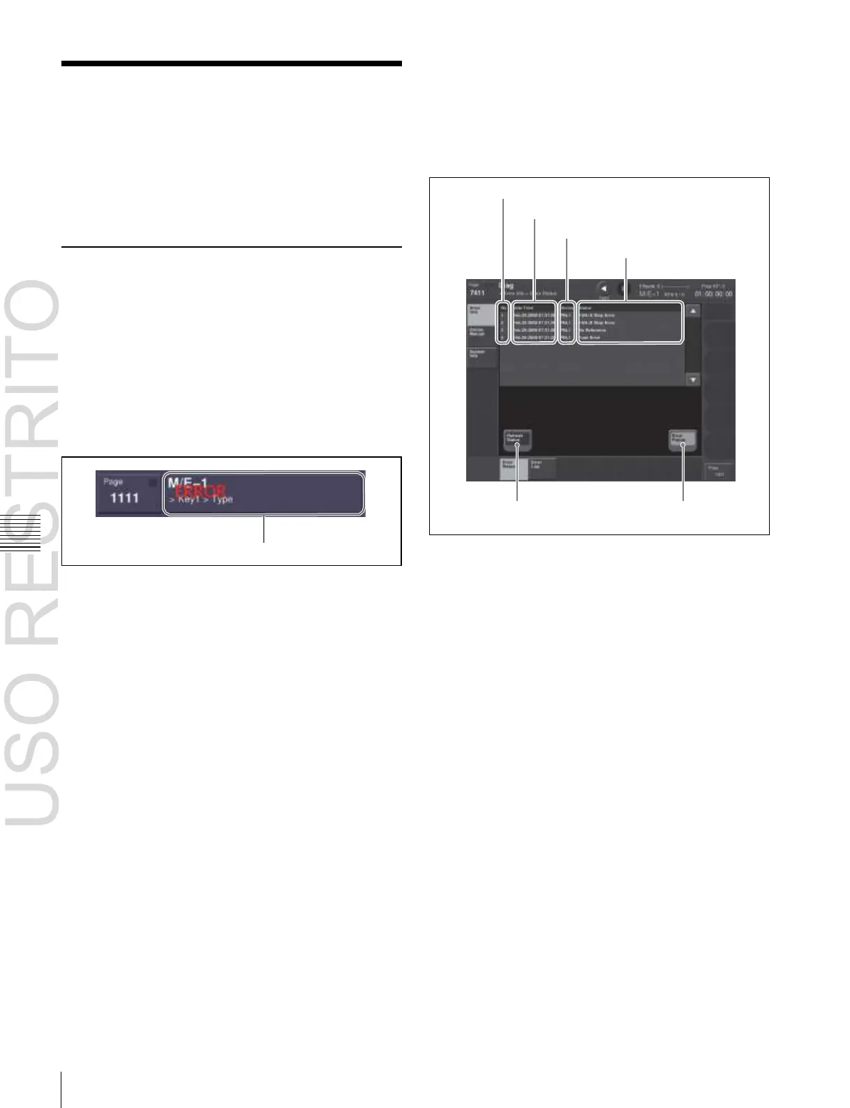 A list display in the Error Status menu (7411)/Error Log