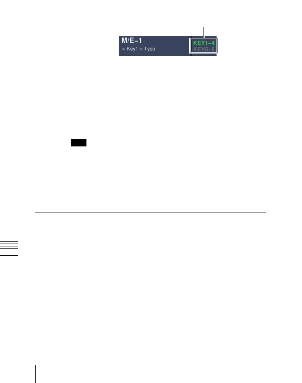 Any of the above operations displays the M/E1 >Key1 menu.