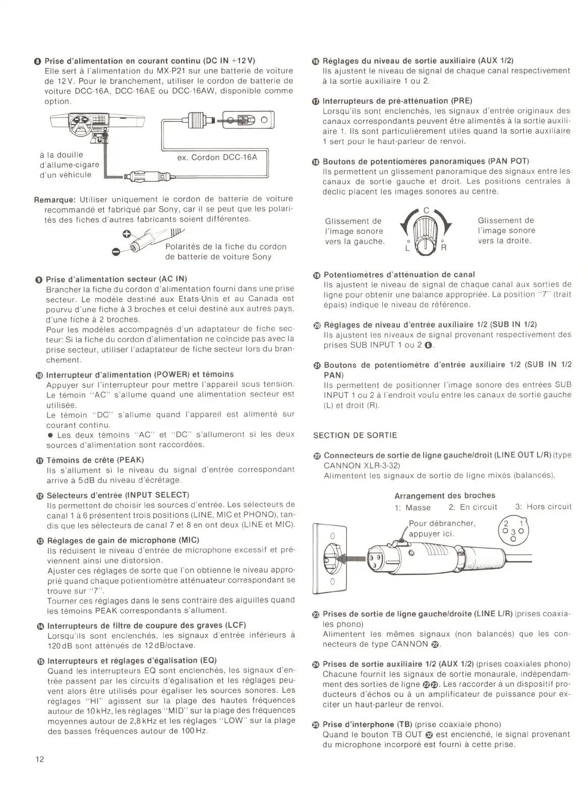 Prises de sortie auxiliaire 1/2 (AUX 1/2)