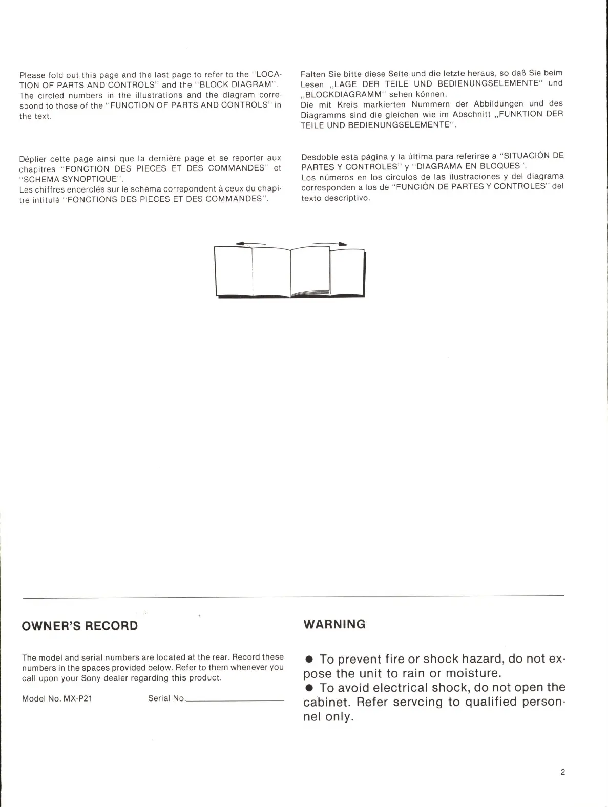 TION OF PARTS AND CONTROLS" and the " BLOCK DIAGRAM" .