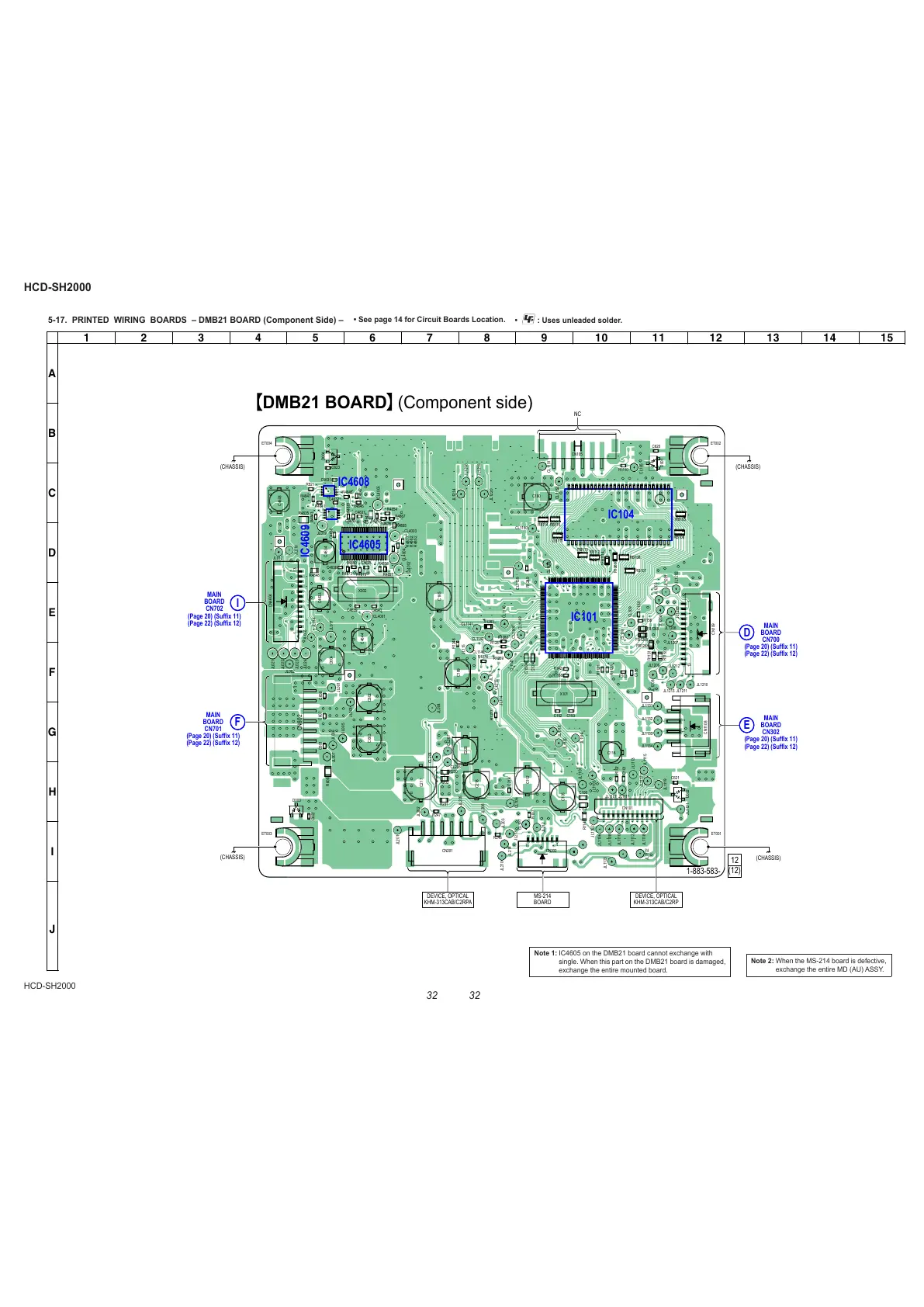 Note 1: IC4605 on the DMB21 board cannot exchange with