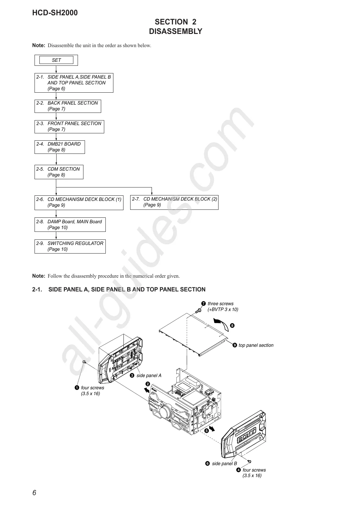 Note: Disassemble the unit in the order as shown below.