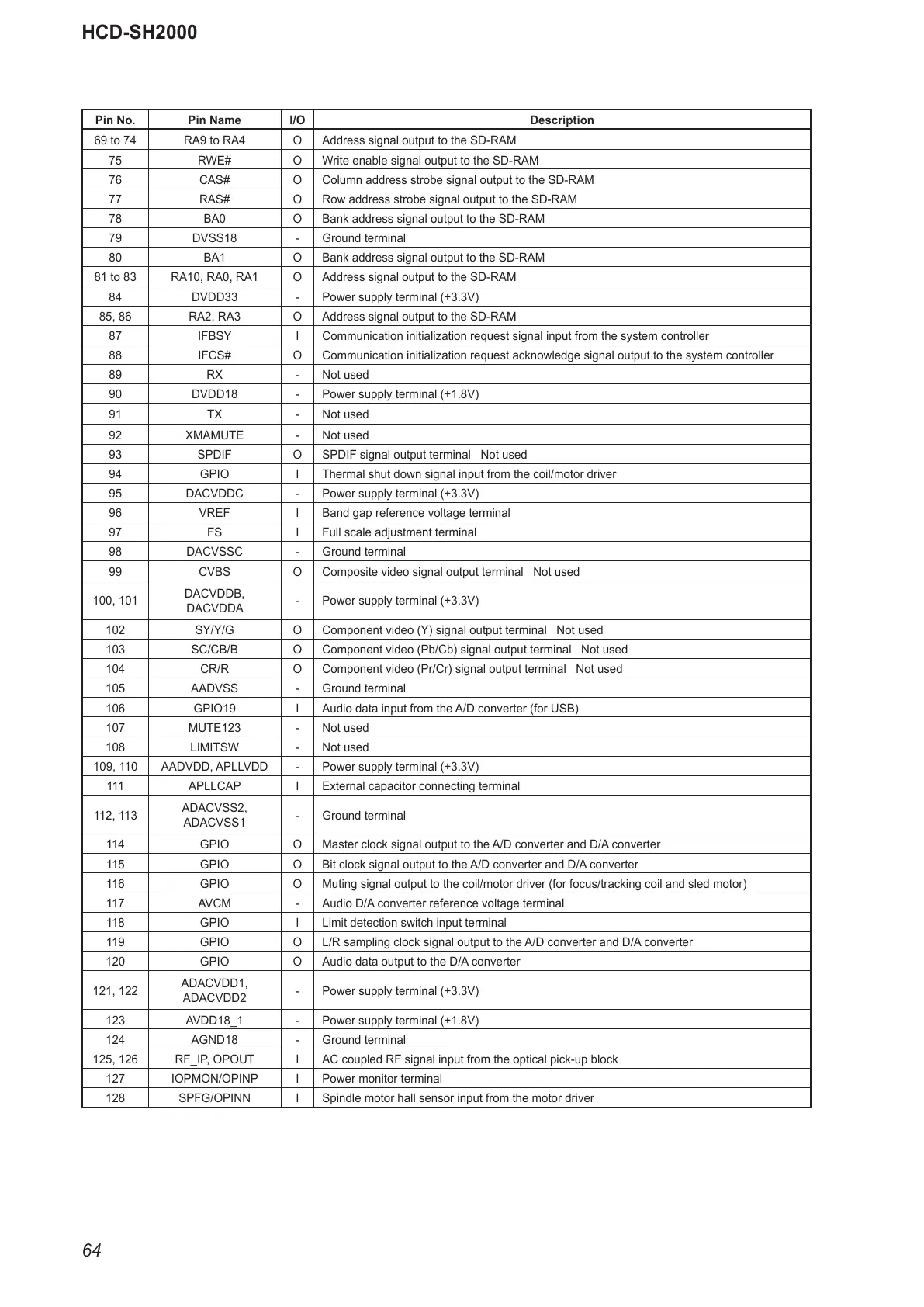 116 GPIO O Muting signal output to the coil/motor driver (for focus/tracking coil and sled motor)