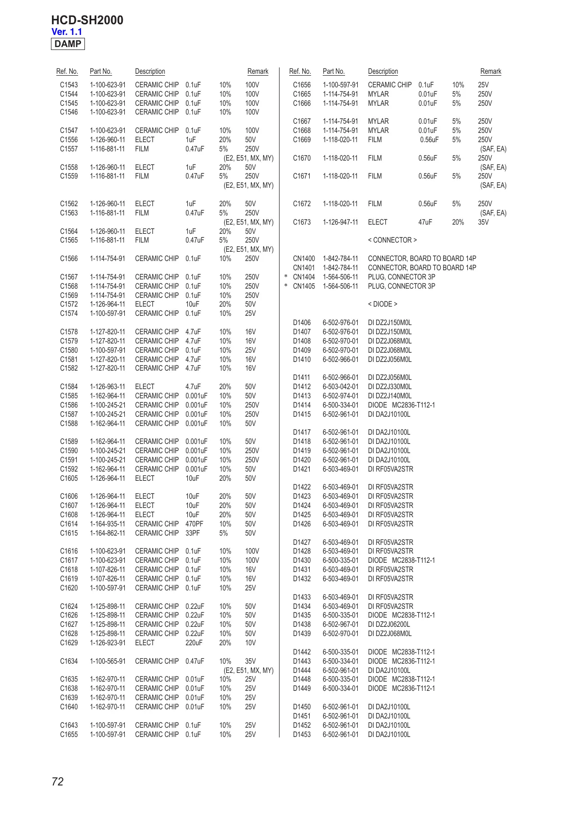 Ref. No. Part No. Description Remark Ref. No. Part No. Description Remark