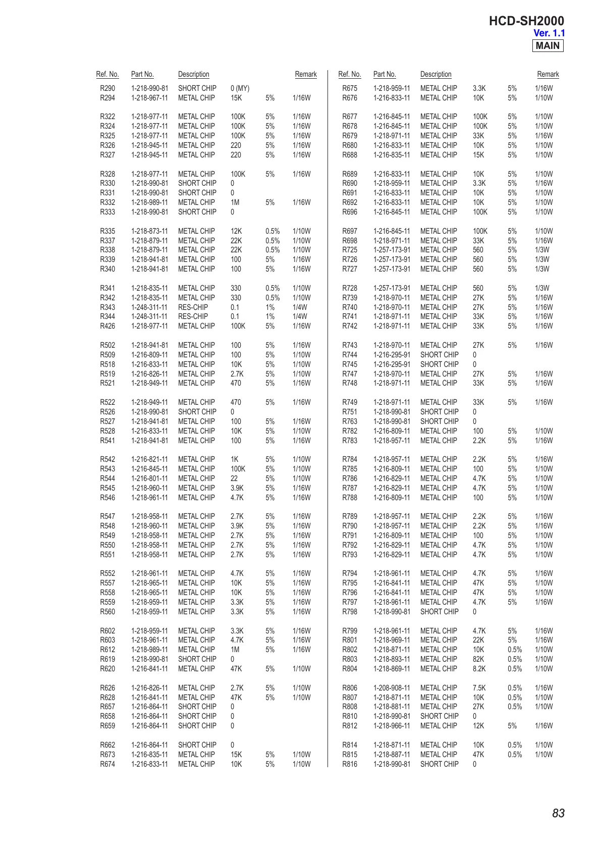 Ref. No. Part No. Description Remark Ref. No. Part No. Description Remark