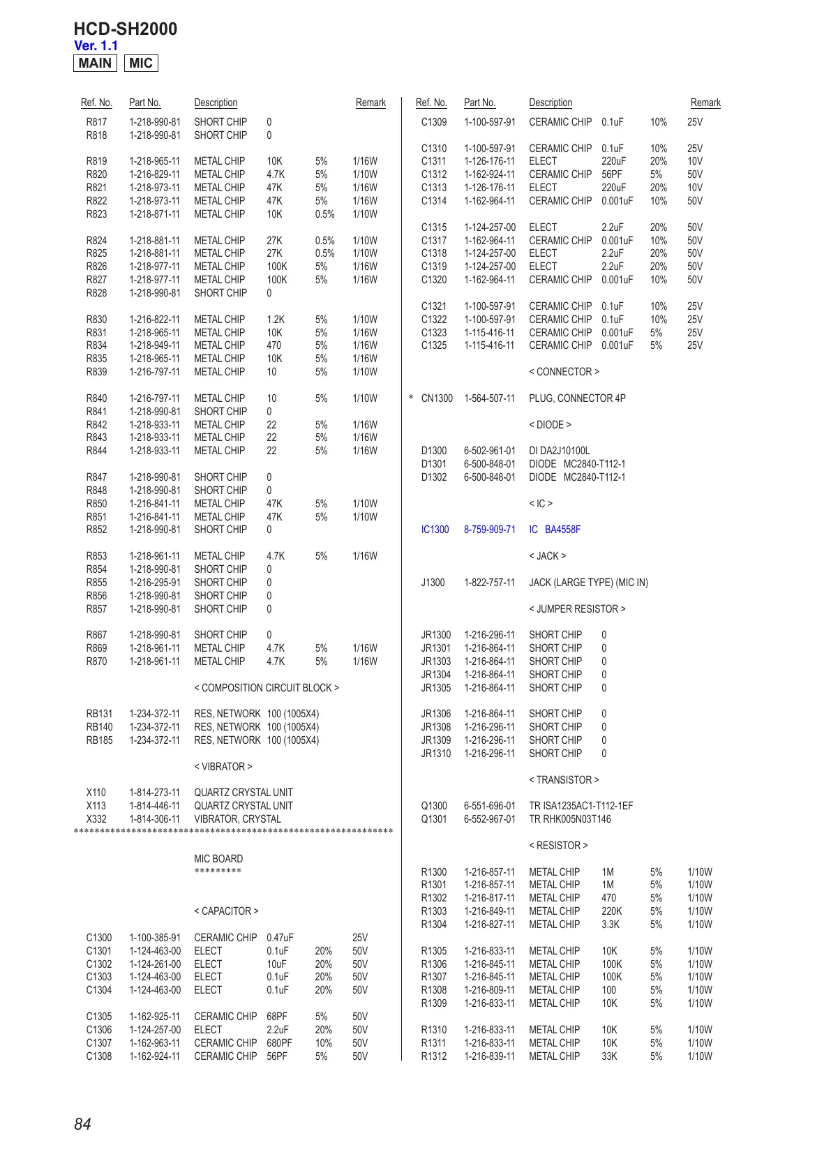 Ref. No. Part No. Description Remark Ref. No. Part No. Description Remark