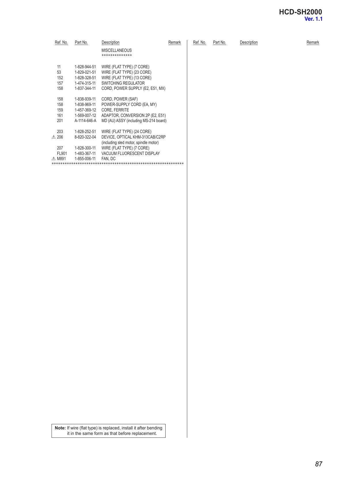 Ref. No. Part No. Description Remark Ref. No. Part No. Description Remark