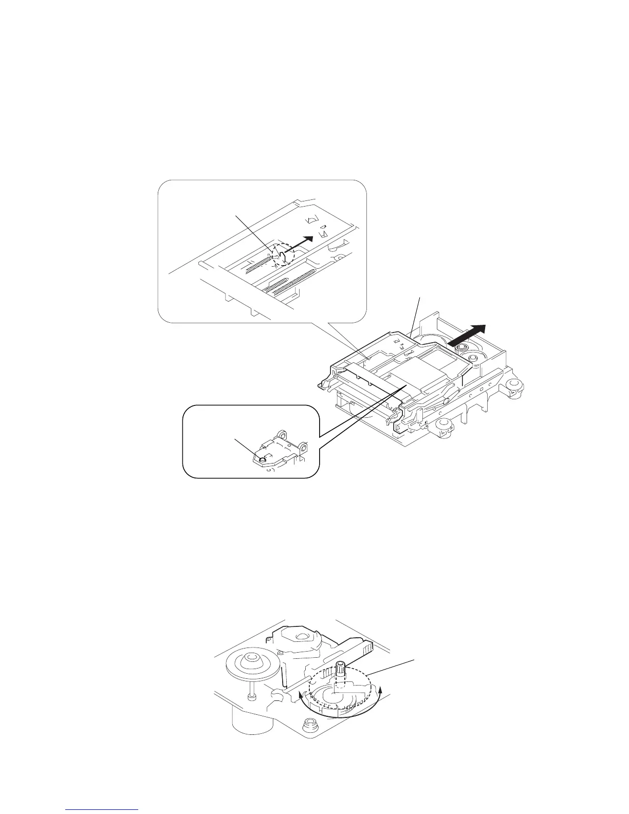 • In cleaning the objective lens of optical pick-up, move the mechanism deck by the following method.