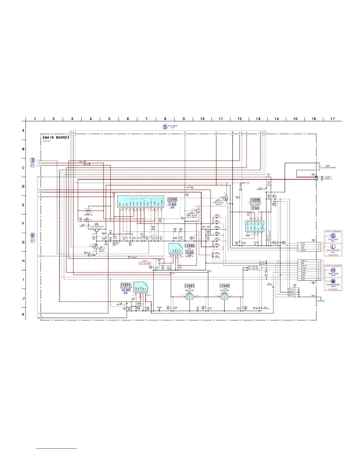 Note: Be sure to execute the Voltage Adjustment on page 46, whenever the asterisked parts (IC506, R550, R551, RV500), mounted