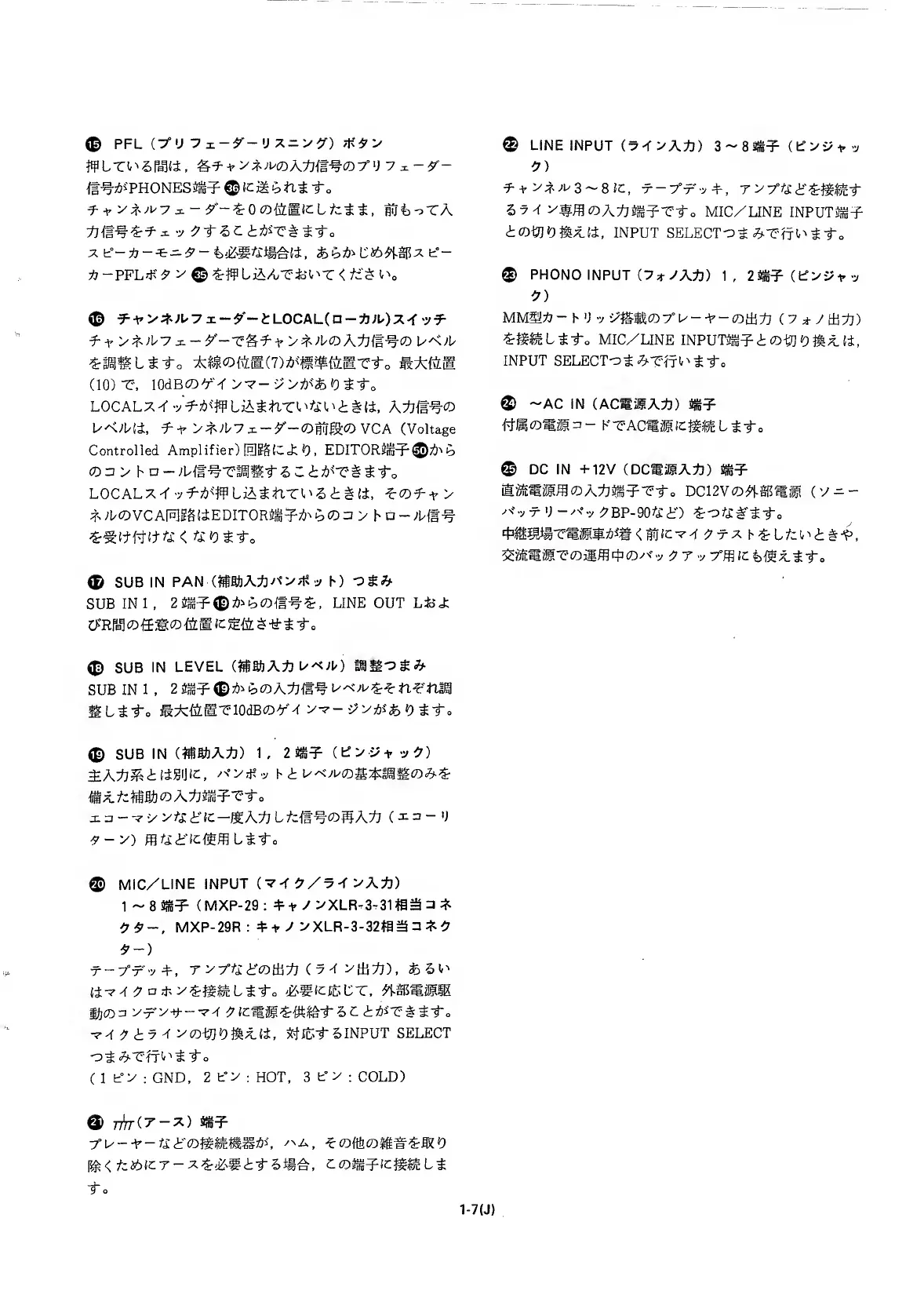 Sony mxp-29 - Input; Line; Sub in; Mxp-29