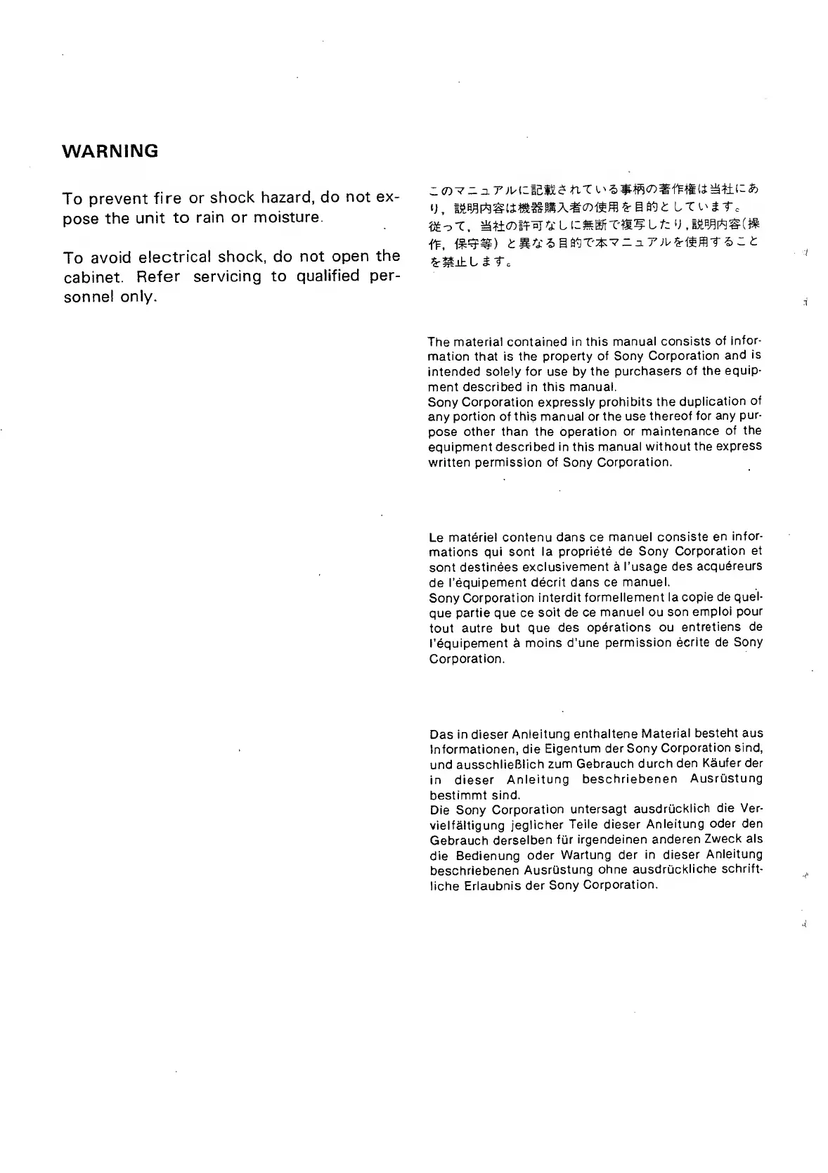 Sony mxp-29 - Warning