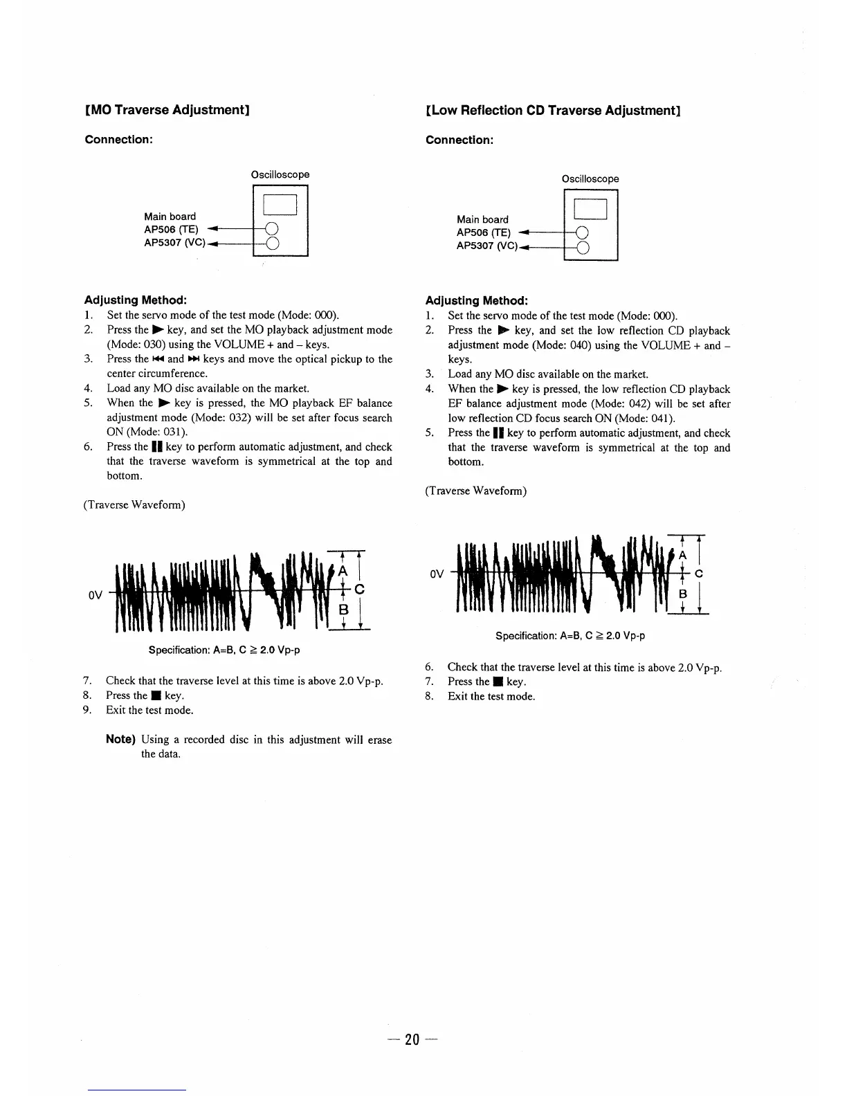 Sony MZ-E3 - MO Traverse Adjustment; Array