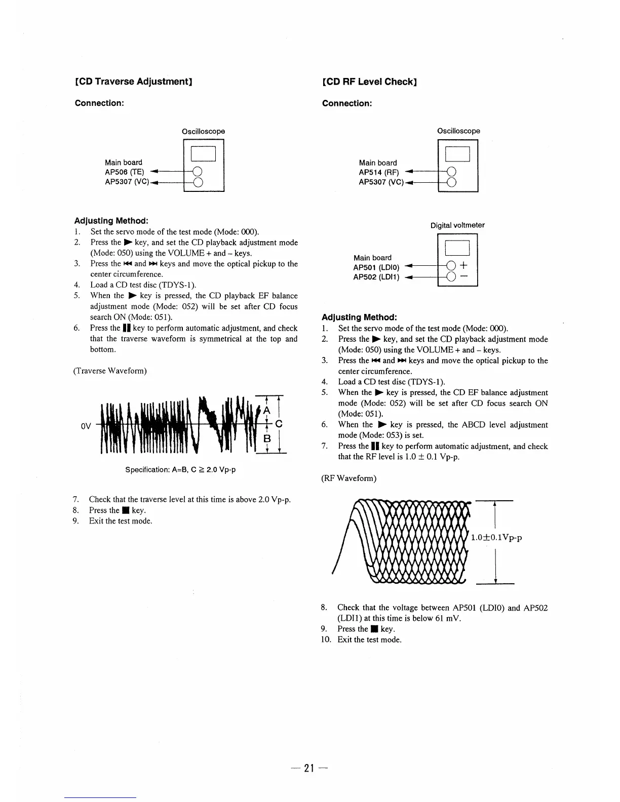 Sony MZ-E3 - CD Traverse Adjustment; Array