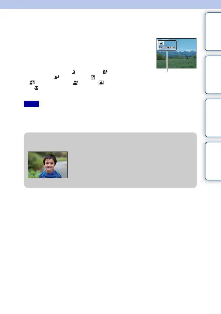 When the camera recognizes the scene, the Scene