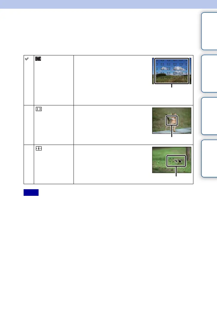 Selects the focusing area. Use this function when it is difficult to get the proper focus in