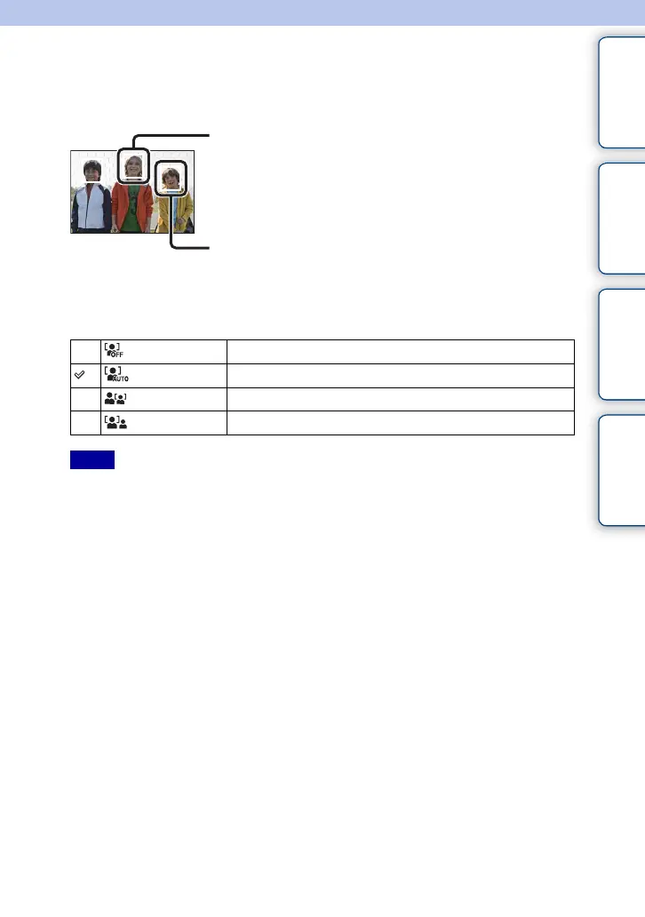 • During [Smile Shutter] shooting, [Face Detection] is automatically set to [Auto] even if it is set to [Off].