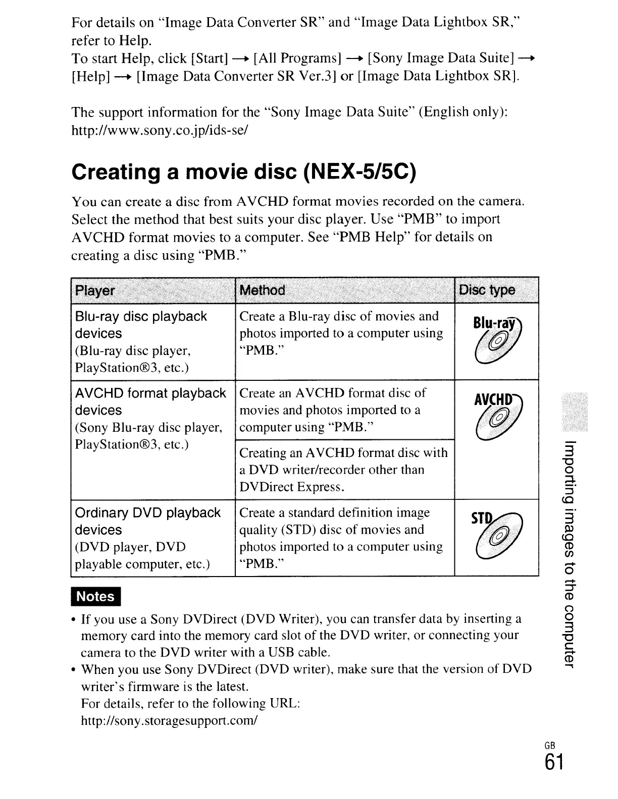 AVCHD format movies to a computer. See "PMB Help" for details on