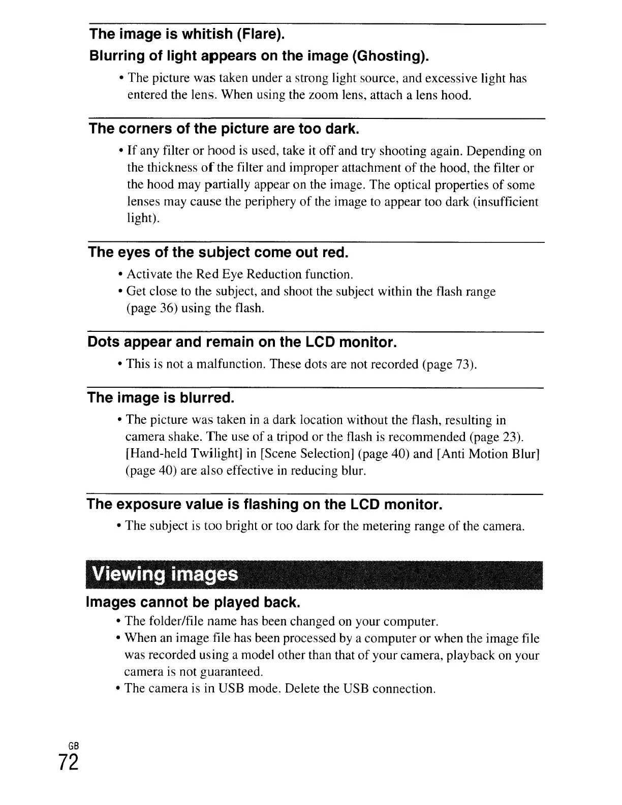 • This is not a malfunction. These dots are not recorded (page 73).