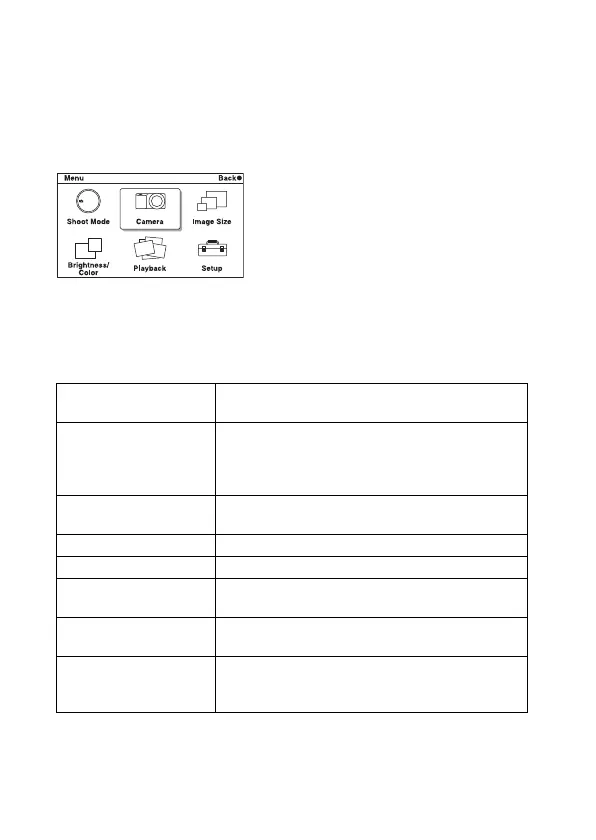 When you press [Menu], six menu items; [Shoot Mode], [Camera], [Image