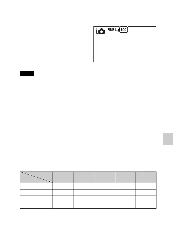 The table shows the approximate number of still images that can be recorded