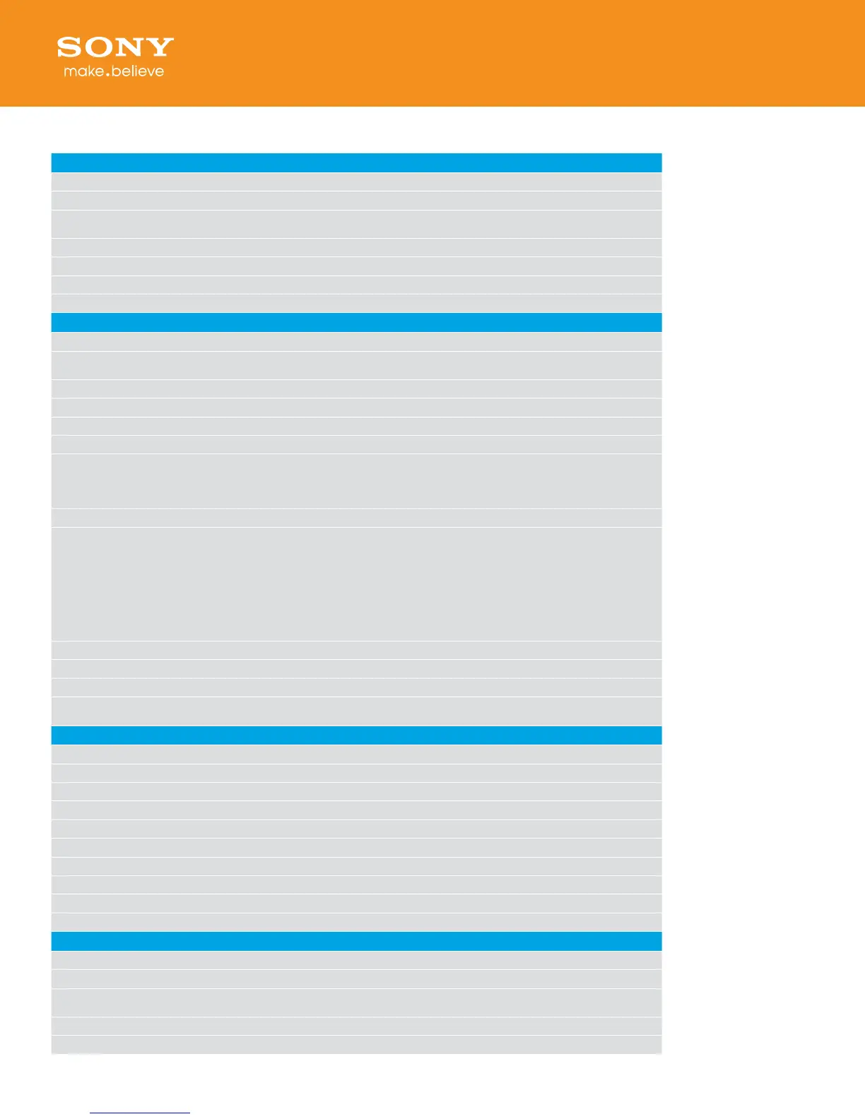 Still Image Max Eective Resolution Memory Stick PRO Duo™/Pro-HG Duo™ media; SD, SDHC and SDXC memory card