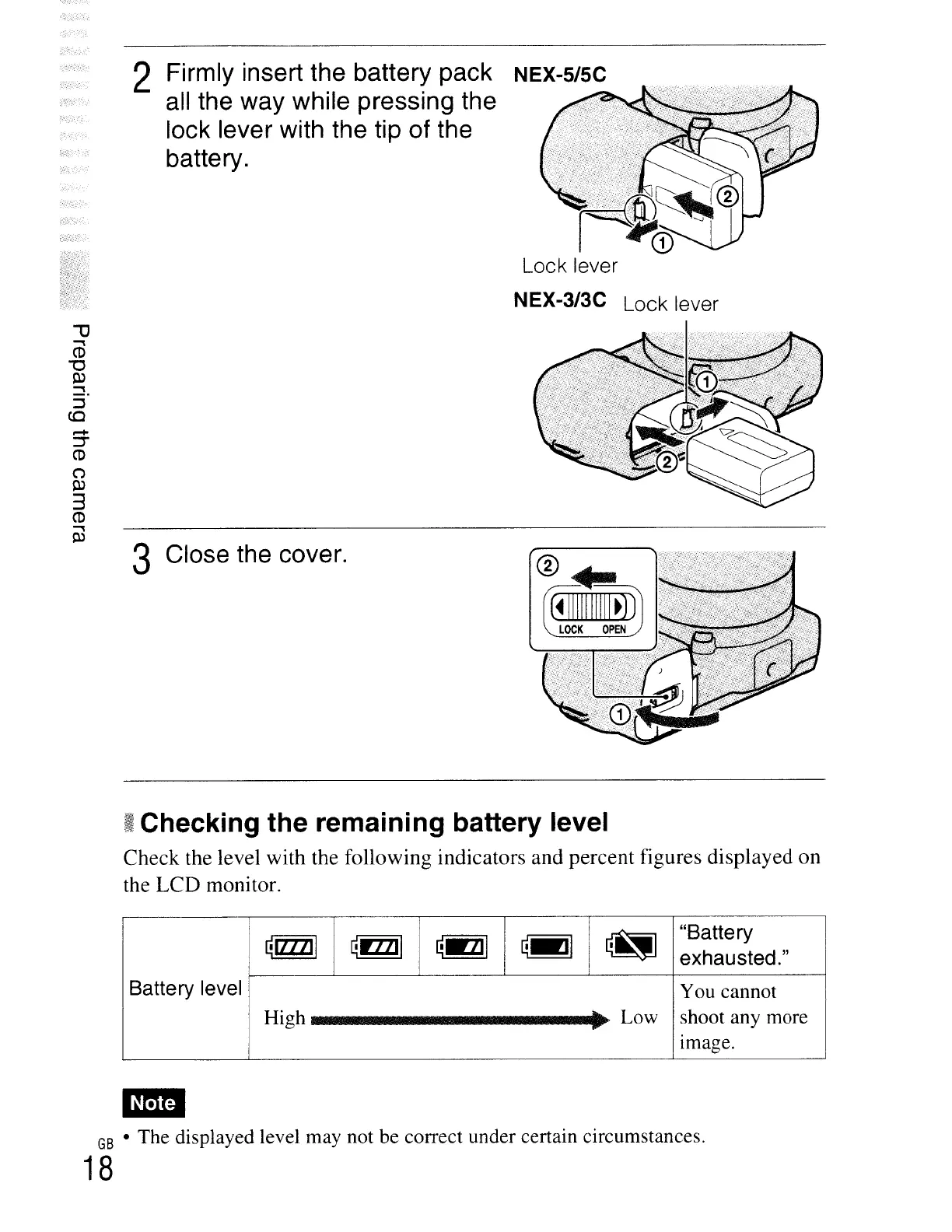 2 Firmly insert the battery pack NEX-5/5C