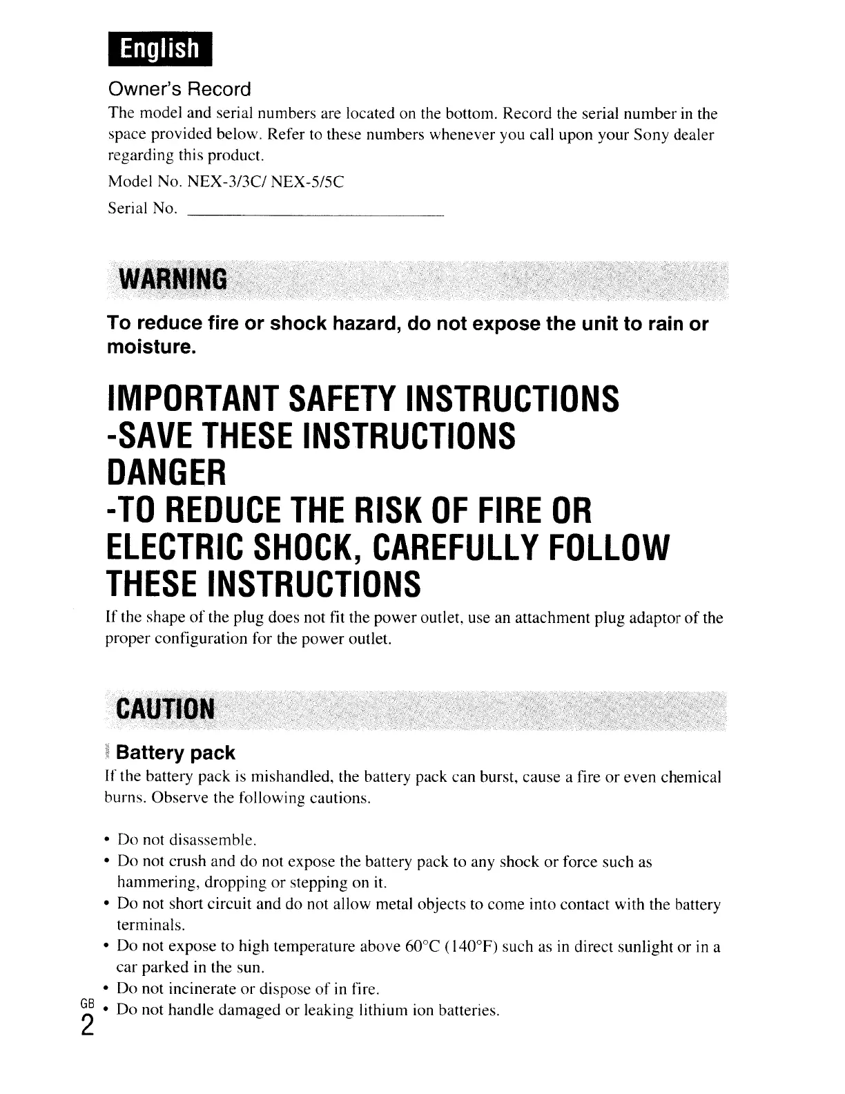 Model No. NEX-3/3C/ NEX-5/5C