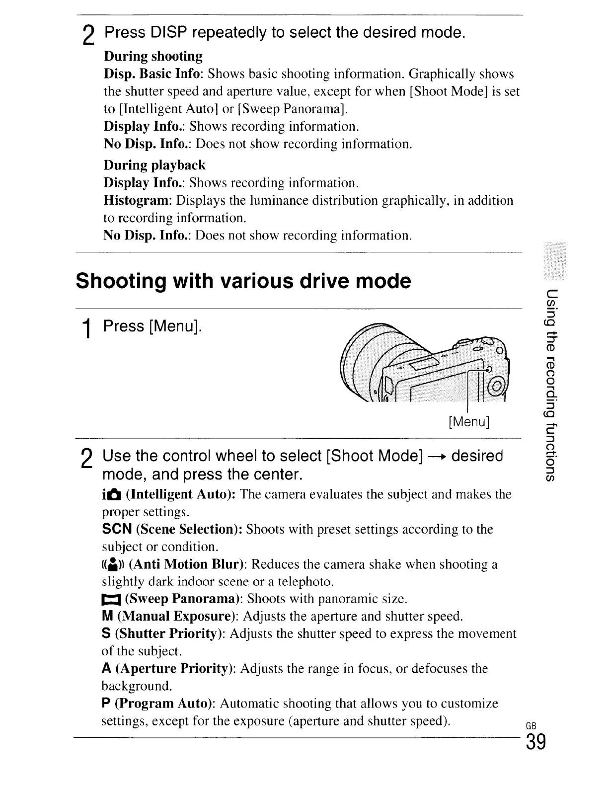 (Anti Motion Blur): Reduces the camera shake when shooting a