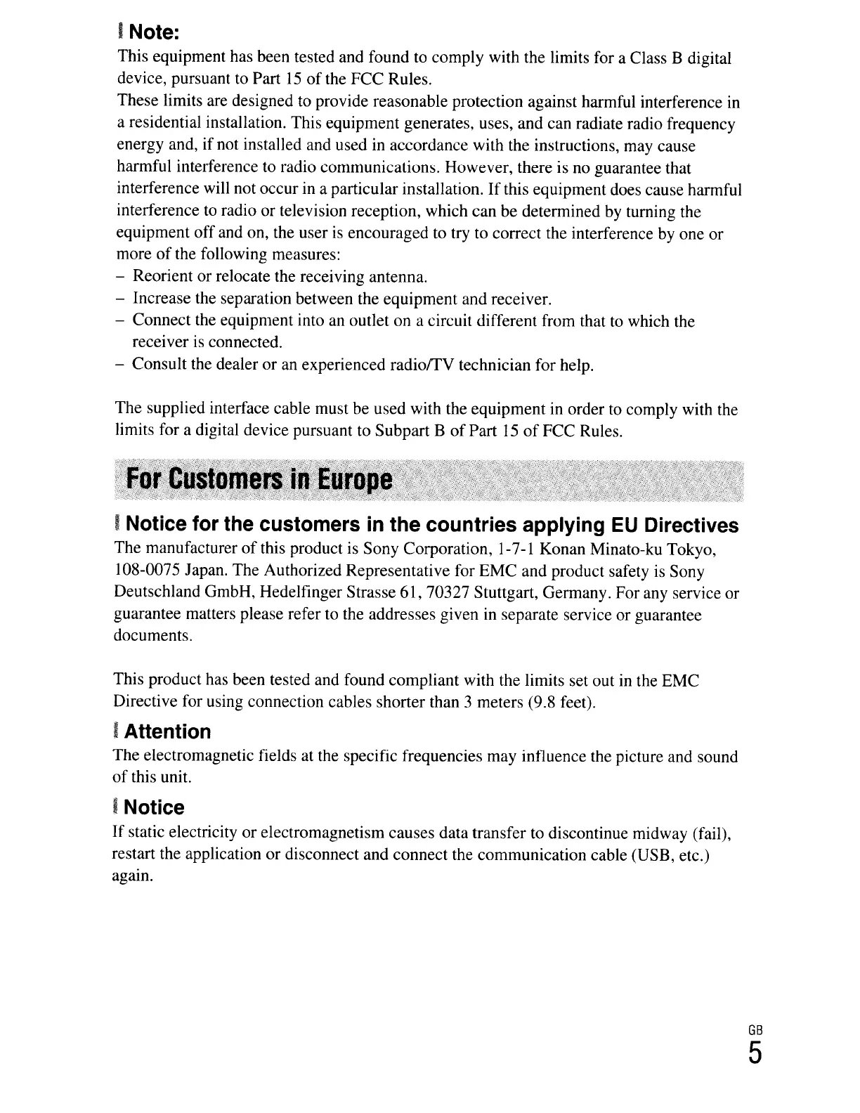 108-0075 Japan. The Authorized Representative for EMC and product safety