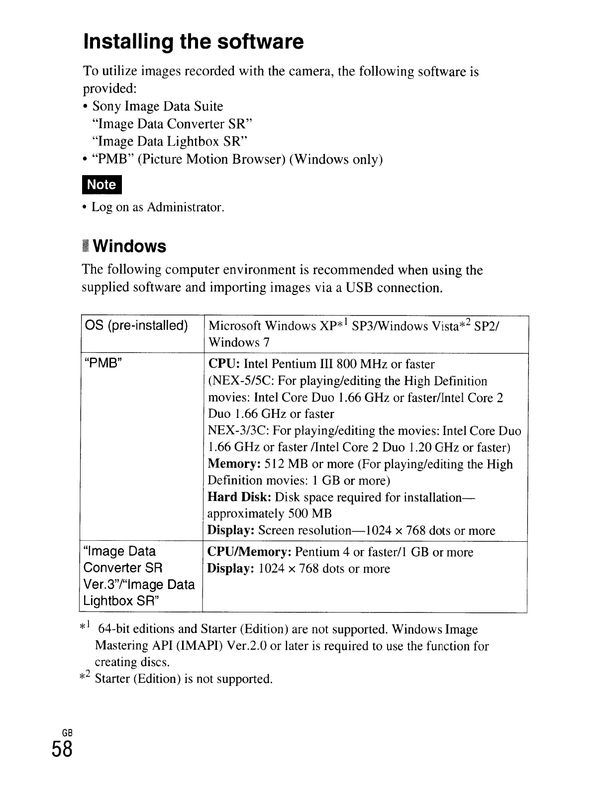 NEX-3/3C: For playing/editing the movies: Intel Core Duo